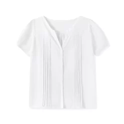 Women’s Button Down Blouse Stylish Solid White V Neck Short Sleeve Tops for Summer T-Shirts